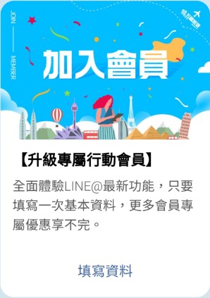 第一次加入成為好友時,記得往下滑一下,點選卡片【升級專屬行動會員】喔!