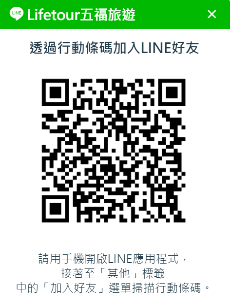 如需真人客服,請加入「五福旅遊客服」好友諮詢:https://lihi1.com/EG3Ry